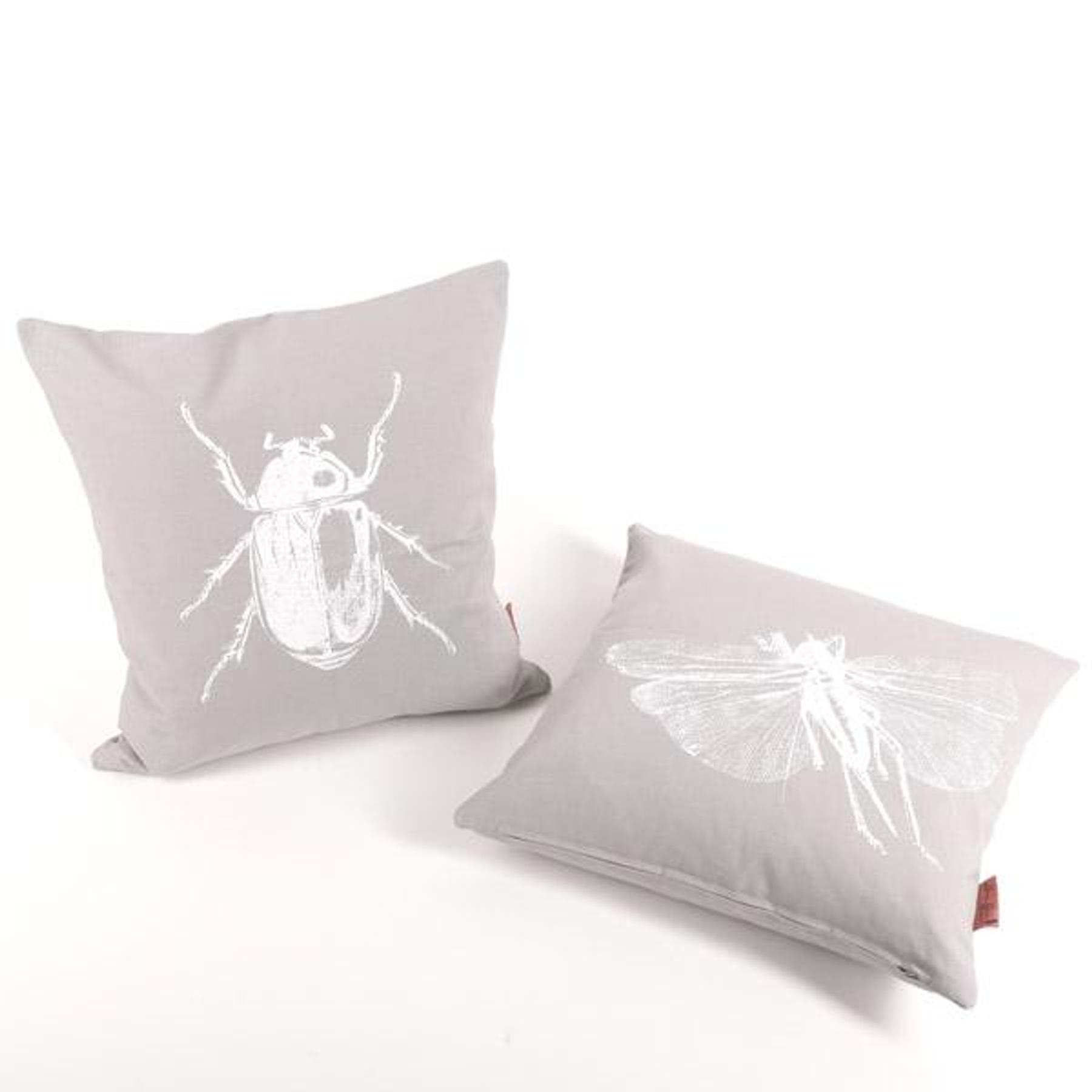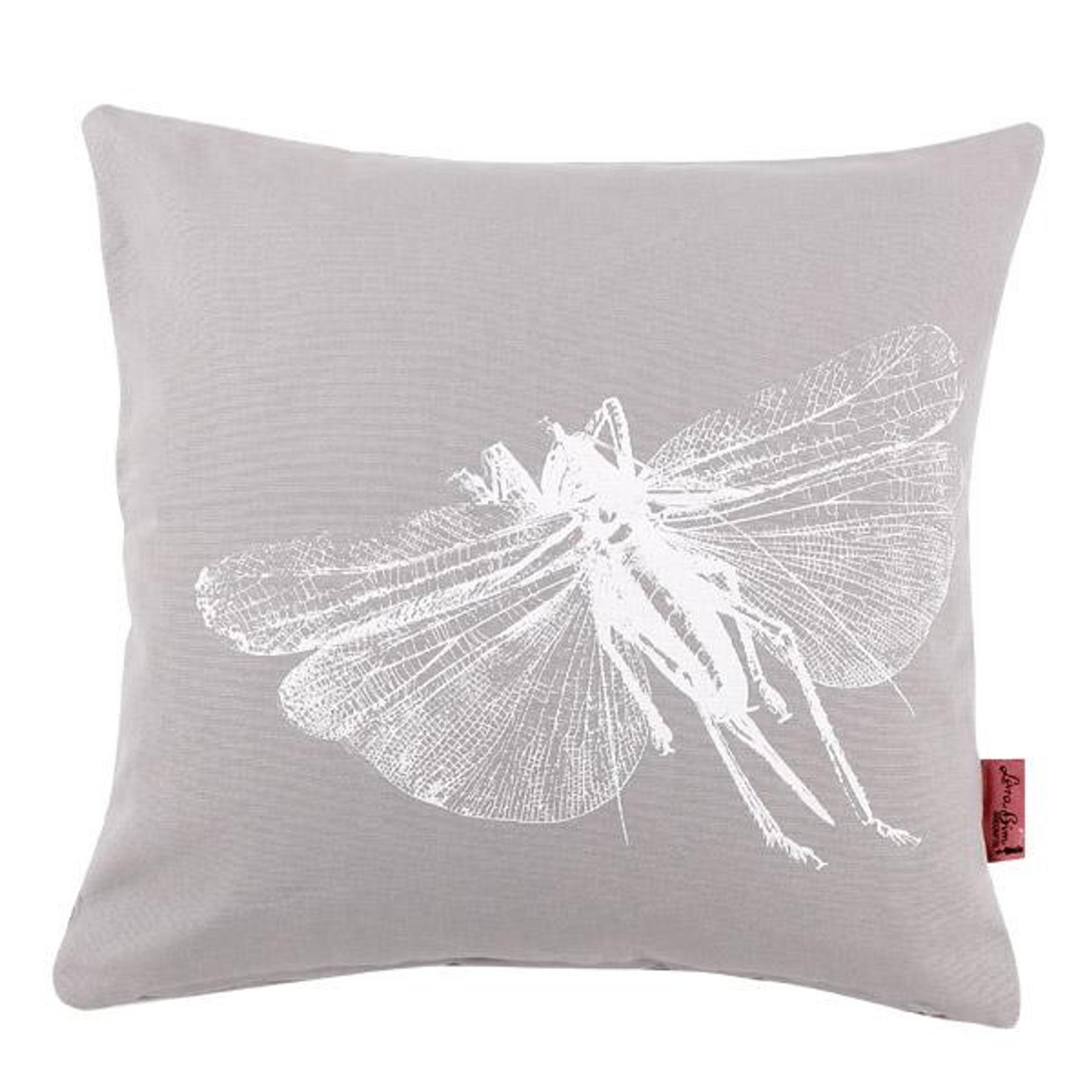 Handgemachtes Baumwollkissen mit weißem Grashüpfermotiv – Kissenhülle in 50x50 cm made in Germany by Lara Bim