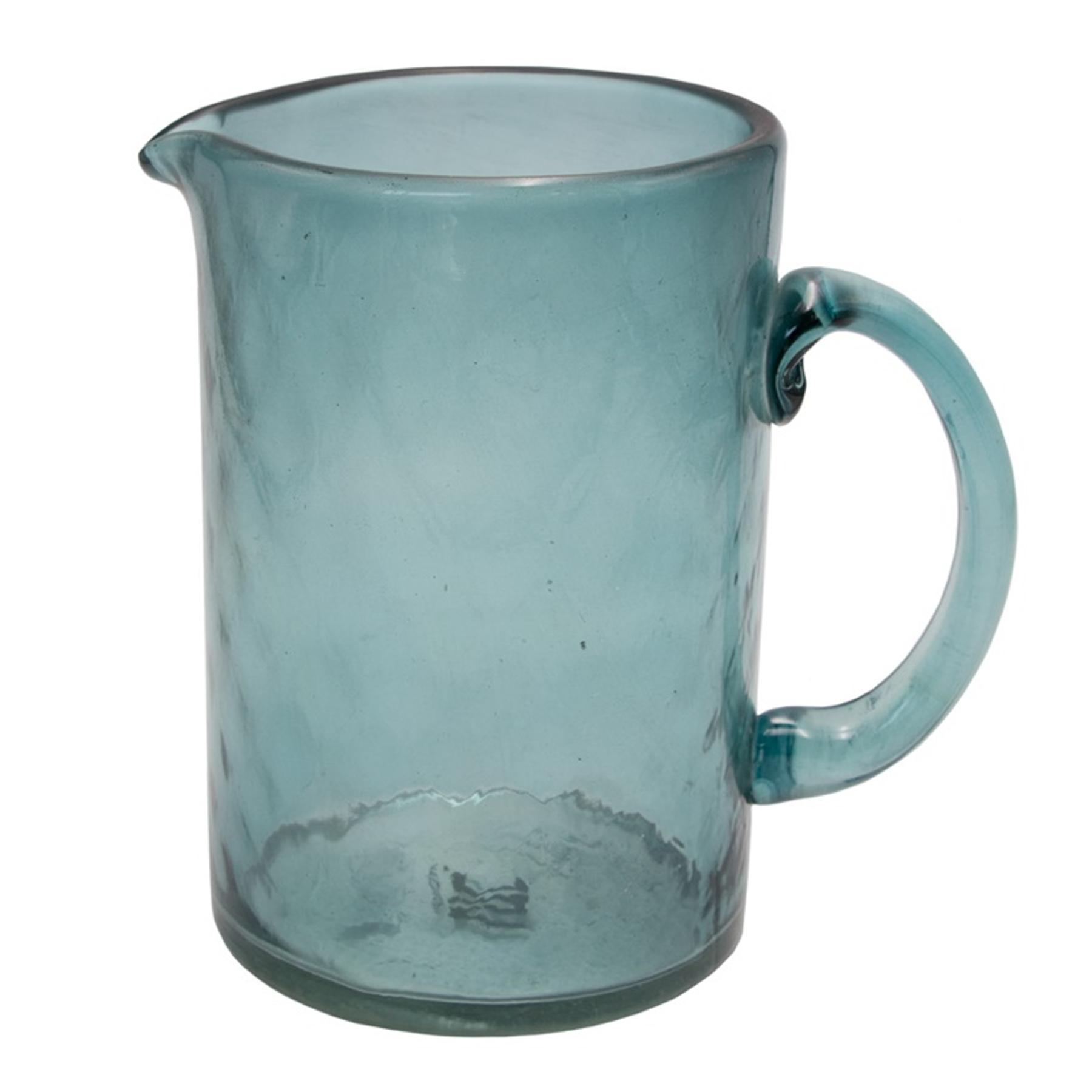 Nichts geht über die Art und Weise, wie die Sonne auf diesem mundgeblasenen Glaskrug reflektiert. Erhältlich in erfrischendem Aquaton, verleiht es Ihrer Tischdekoration ein sofortiges Sommergefühl. Der Krug von Urban Nature Culture aus recyceltem Glas wurde mundgeblasen, deshalb ist jedes Stücke in Unikat. Die